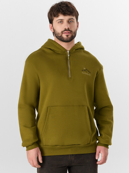 Худи свободного силуэта с капюшоном. Перед с застёжкой на тесьму-молнию.
