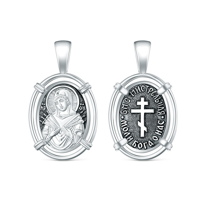 Совместные покупки Нижний Тагил Ювелирные украшения и бижутерия Подвески — Икона нательная из чернёного серебра - Семистрельная Божья Матерь 925 пробы К3-5
