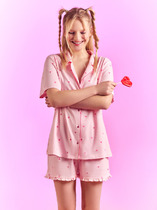 Комплект включает розовую футболку с принтом с изображением девушки и синие шорты с принтом и мягкой эластичной резинкой для удобной посадки на талии.