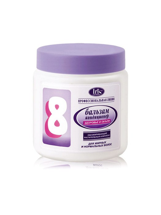IRIS Бальзам-кондиционер д/волос №8 Здоровье и объем, "Проф.линия", Растительный комп., предназначен для активного ухода за жирными и нормальными волосами. Здоровье и объем. Натуральный обезжиривающий комплекс нормализует работу сальных желез, восстанавливает структуру волос, возвращая им здоровый вид.