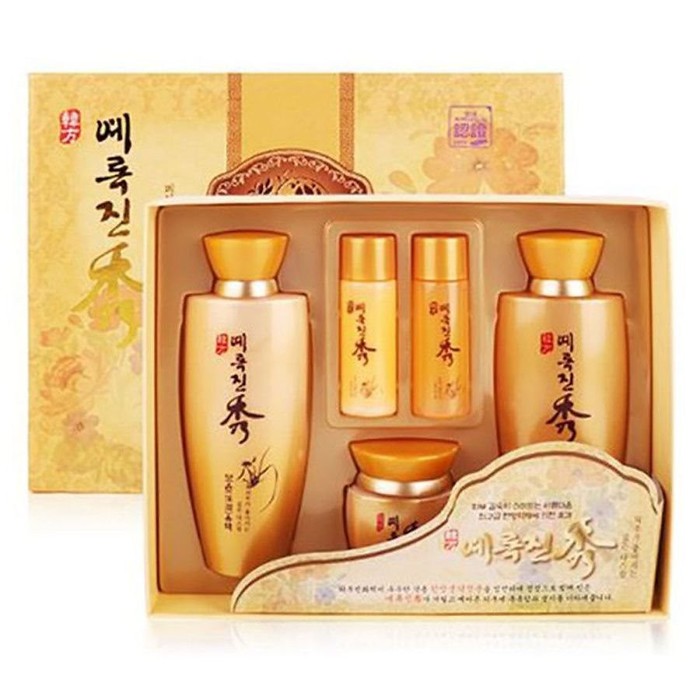 Уходовый набор для лица с восточными травами Jigott Yerokjinsu Hanbang 3set состоит из тонера, лосьона, крема и миниатюр тонера и лосьона. Серия содержит экстракты знаменитых корейских трав (женьшеня, хауттюйнии сердцевидной, дудника лекарственного)