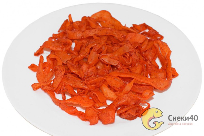 кальмар гигантский, влагоудерживающий агент (подсластитель) сорбит, сахар, соль, лактоза пищевая, перец чили, масло подсолнечное рафинированное дезодорированное, усилитель вкуса и аромата глутамат натрия 1-замещенный, ароматизатор, консервант сорбат калия, краситель Желтый "солнечный закат" FCF. Содержит подсластитель.