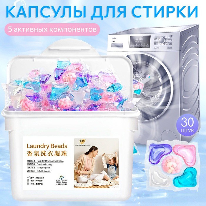 Капсулы для стирки цветного белья 5 в 1 которые заменят абсолютно все средства для стирки. Каждая капсула состоит из пяти секций, содержит оптимальное количество моющего средства, пятновыводителя и кондиционера, что делает стирку удобной и эффективной.Капсулы обеспечивают отличное удаление пятен даже при низких температурах, защищая ткань и сохраняя белизну белого белья и яркость цветного. Функциональные добавки предотвращают окрашивание ткани, сохраняя её первоначальный вид, насыщенность цвета, яркость и структуру. Специальный компонент смягчает волокна ткани и защищает их от деформации.Капсулы оставляют на белье легкий и свежий аромат, при этом не оставляя следов и разводов. Идеальны для стиральной машины.При контакте с водой пленка капсулы растворяется и ингредиенты смешиваются, начиная действовать. Специальная формула быстро действует, удаляя загрязнения, очищает даже стойкие и сложные пятна и сохраняет яркость цвета стирка за стиркой. Простота использования: Просто поместите капсулу в барабан стиральной машины перед загрузкой белья и наслаждайтесь кристальной чистотой! Одной капсулы хватит на 4-5 кг белья. Для большего объема белья следует использовать 2 капсулы.Храните капсулы в месте, недоступном для детей.