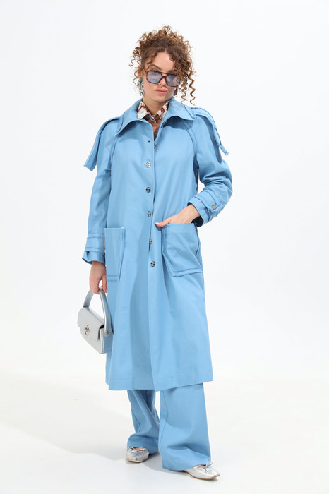 Кардиган оверсайз, немного расклешенного силуэта, без подкладки. Перед с центральной бортовой застежкой на пуговицы и петли. На детали передней части накладной карман. Спинка со средним швом и расположенным в области талии хлястиком. Рукав покроя реглан. Воротник стояче-отложной. Пришивная декоративная нашивка на кармане по переду.