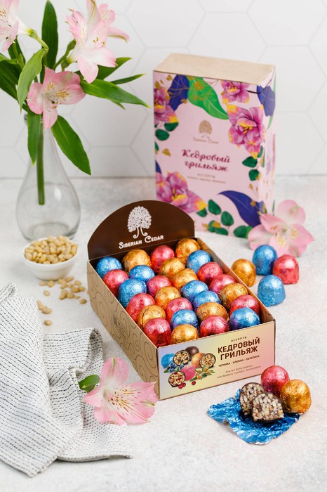 Совместные покупки Нижний Тагил Продукты Конфеты, сладости — Кедровый грильяж ассорти / клюква, черника, облепиха / шоу-бокс / 540 г