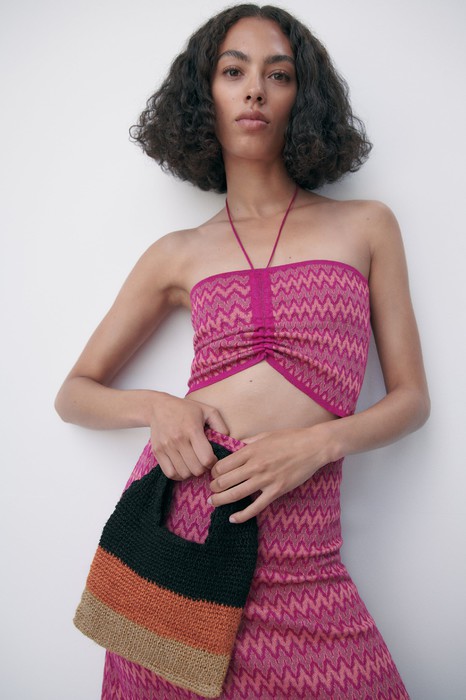 KLEINE BEUTELTASCHE AUS JUTE MIT STREIFEN