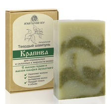 Твердый натуральный шампунь для мытья нормальных и жирных волос. Изготовлен из смеси шести растительных масел и обогащен экстрактом крапивы и эфирными маслами герани, жасмина, мяты, эвкалипта, шалфея мускатного. Молочного-белого цвета с зелеными мраморными разводами и приятным травяным ароматом.