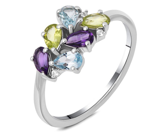 Кольцо, арт.656763 Серебро Серебро 925, р. 17.5, 2,17 гр., аметист , перидот , топаз