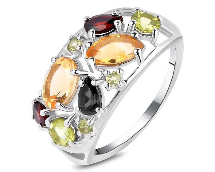 Кольцо, арт.658767 Серебро Серебро 925, р. 17.5, 3,44 гр., гранат , перидот , цитрин