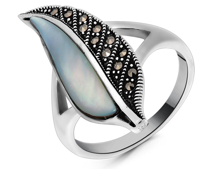 Вес: 5.38 г Вставка: Марказит Цвет камня: Белый Производство: Таиланд Покрытие: Оксидирование Размер колец: 181920.5 Количество: 5Кольцо, арт.656427 Серебро Серебро 875, р. 19, 5,38 гр., марказит , перламутр