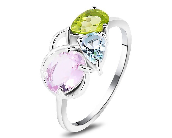 Кольцо, арт.658427 Серебро Серебро 925, р. 18.5, 2,7 гр., морганит , перидот , топаз
