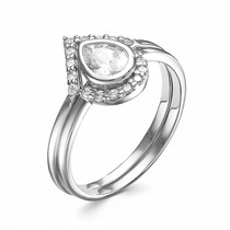 Кольцо с фианитом родированное серебро 925*