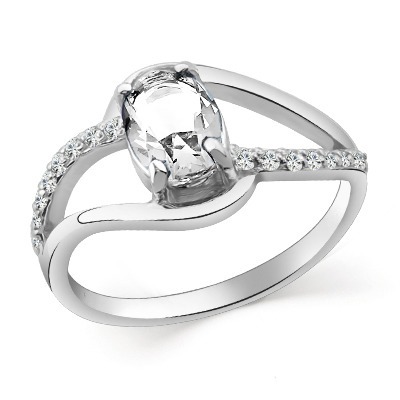 Кольцо с фианитом родированное серебро 925*
