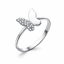 Кольцо с фианитом родированное серебро 925*
