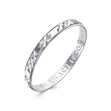 Кольцо (Спаси и Сохрани) из серебра штамп.родированное с алмазной огранкой