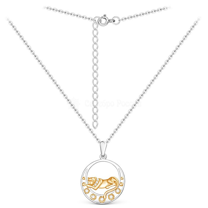Колье из родированного серебра с золочением и фианитами - Пантера
