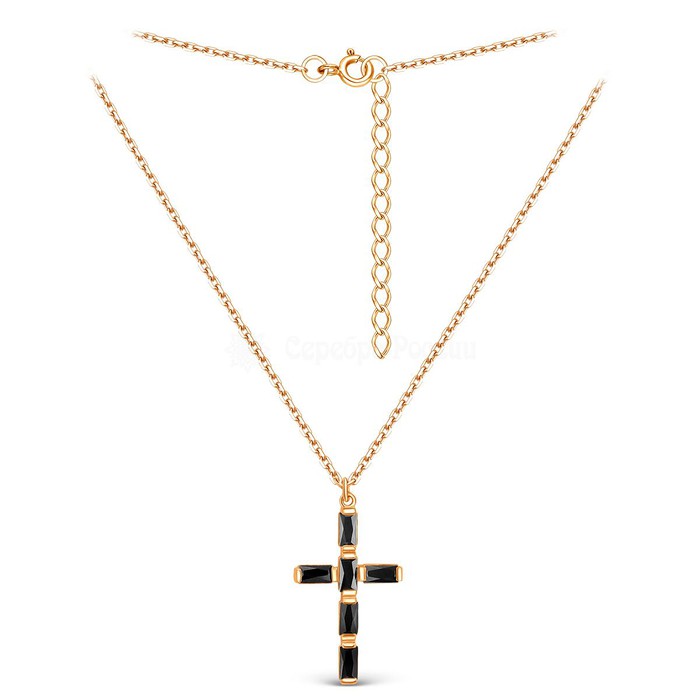 Колье Крест из золочёного серебра с чёрными фианитами