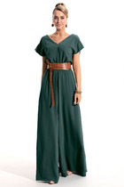 Комбинезон полуприлегающего силуэта выполнен из трикотажа серого цвета. Характеристики: отложной воротник, центральная застежка на петли-пуговицы, талия отрезная на резинке дополнительно на кулиске, на груди и ниже талии расположены карманы, низ брючен на затягивающейся резинке с фиксатором, рукав вточной. Длина изделия от плечевова шва с горловиной 160см, длина рукава от края горловины 75 см.