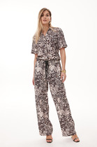 Комбинезон полуприлегающего силуэта, выполнен из хлопковой ткани «шитье». Застежка с притачными планками на кнопки. Линия талии отрезная, на передних частях брюк складки, в боковых швах карманы. Спинка с отрезной кокеткой и складкой. Воротник стойка. Рукав втачной. В комплекте съемный ремень. Перед на подкладке. В брюках хлопковая подкладка в виде шорт.