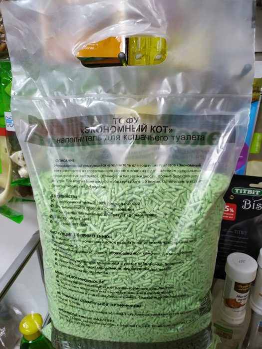 Совместные покупки Нижний Тагил Товары для животных Наполнители для туалета — Комкующийся наполнитель TOFU ЗЕЛЕНЫЙ ЧАЙ "Экономный кот" 4л/2,15кг