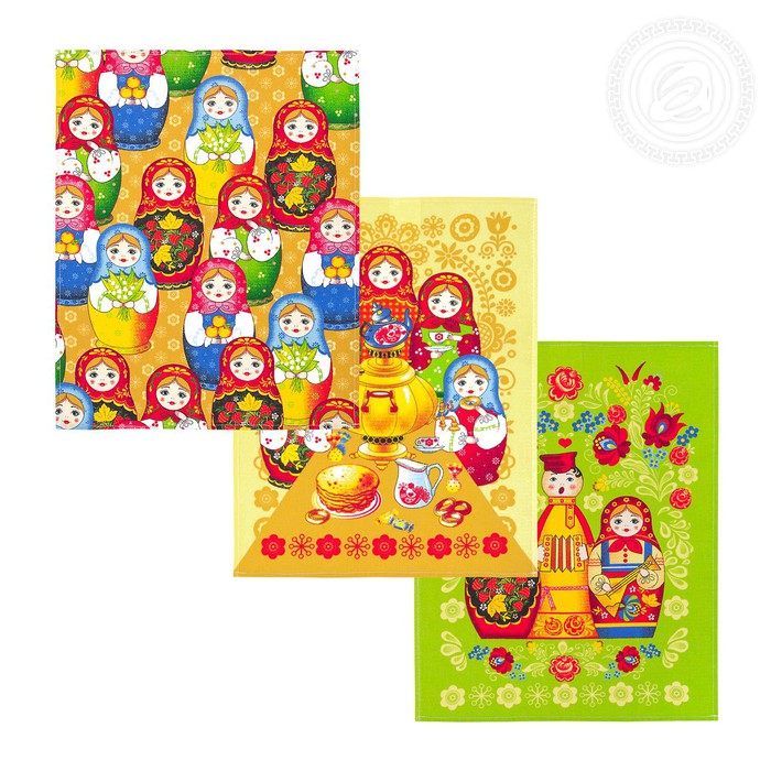Комплект полотенец для кухни с новым рисунком, который так и называется – «Матрешки», может быть не просто приятным подарком, а действительно полезной вещью в быту. Яркие сочные краски, изображение всевозможных матрешек, хлеб и соль на столе – все это указывает на хороший вкус хозяйки и ее щедрую душу. Приятно быть в компании там, где ценится красота и качество тканей. А значит, и угощение будет вкусным и сытным. Матрешки на полотенцах понравятся всем! Прекрасный подарок друзьям после отличного застолья!