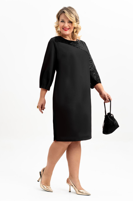 Нарядное платье больших размеров от бренда Альгранда представляет собой идеальный выбор для тех, кто ищет праздничный наряд с уникальным дизайном и комфортом. Шикарное нарядное платье с ассиметричными рукавами станет красивым дополнением элегантного женственного образа. Прямой крой платья- футляр подчеркнёт Вашу фигуру, делая её ещё более привлекательной. Оно выполнена из плательной ткани и сетки расшитой пайетками. Длина изделия доходит до середины голени, приоткрывая линию ног. Благодаря такой особенности дизайна платье будет хорошо смотреться в сочетании с обувью на каблуке и на низком ходу. По переду платья есть нагрудные выточка от проймы, фигурная кокетка, небольшой разрез в боковом шве. Спинка платья со средним швом, в который вставляется молния. Вырез горловины круглый. Воздушный втачной рукав длиной 3/4, по низу которого есть складки. Подойдёт для посещения деловых мероприятий и торжественных событий. В комплекте к платью прилагается нарядная сумочка .Эта маленькая сумочка придаёт завершённость образу. Выполненная в блестящем дизайне, она привлекает внимание и добавляет нотку роскоши. Наступает год Огненной Лошади и платье прямого кроя с сумочкой принесет Вам удачу в следующем году! Длина платья 56-62 размеры- 106 см, а в 64-66- 109 см.
