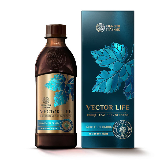Концентрат полифенолов из красных сортов винограда с МОЖЖЕВЕЛЬНИКОМ, Mg и витамином B6 “VECTOR LIFE”, восполняет самое ценное, что необходимо для нормальной работы организма. Уникальное средство содержит фантастическое количество витаминов, минералов, органических кислот, эфирных масел и дубильных веществ. Очищающее и восстановительное действие усиливают целебные свойства уникального крымского можжевельника. Подчеркивает исключительную силу концентрата крайне необходимый организму MgB6.