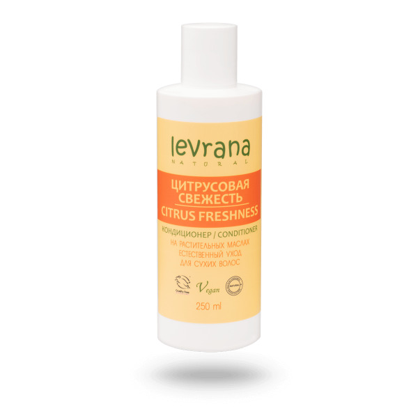 Натуральный кондиционер для волос «Цитрусовая свежесть» нормализует pH волос после мытья, отлично увлажняет и смягчает, борется с тусклым цветом, сечением и ломкостью.