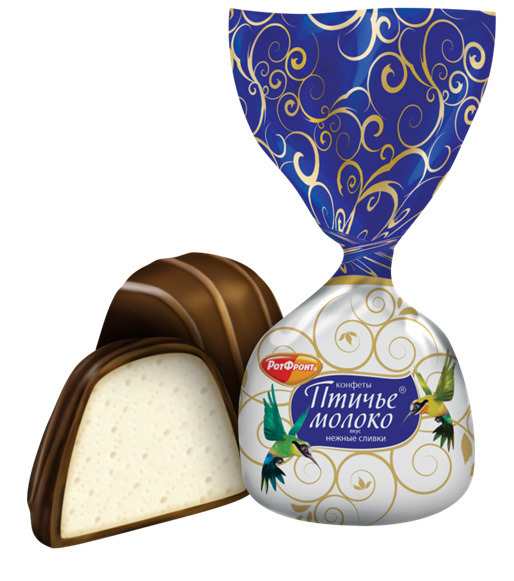 Глазированные конфеты с нежнейшей сбивной начинкой традиционного сливочного вкусa. Конфеты Рот Фронт Птичье молоко нежные сливки-что-то новое среди нашей обыденности. Вкусные, нежные, неповторимые. Попробуйте и эти конфетки станут Вашим любимым лакомством.
