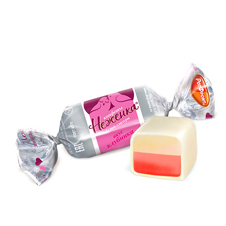 Ароматные конфеты с говорящим названием «Неженка» с клубничным вкусом. По-настоящему нежное двухслойное желе, покрытое белой шоколадной глазурью. Насыщенный сливочно-ванильный вкус дополняют яркие клубничные нотки. Аромат конфет напоминает прохладный молочно-клубничный коктейль или клубничный пломбир. Настоящая летняя радость!