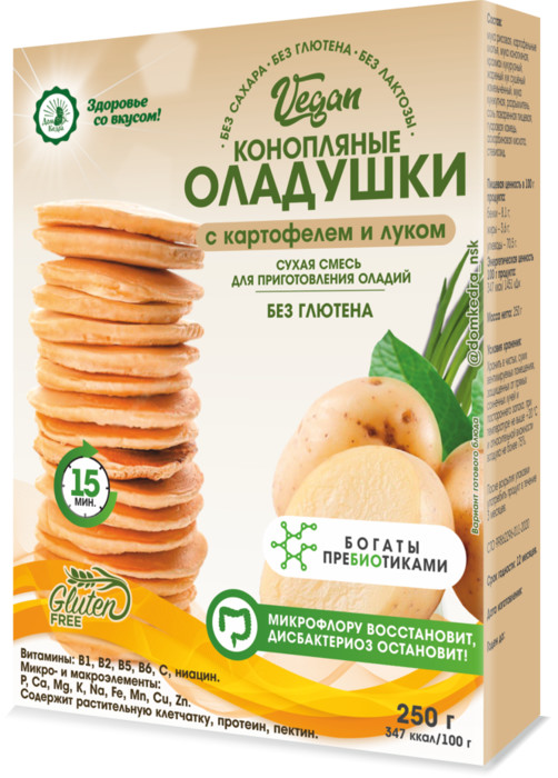 Совместные покупки Нижний Тагил Продукты Мука, смеси для выпечки — Конопляные оладушки VEGAN c картофелем и луком
