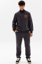 Костюм мужской, выполнен из утепленного футера 3-х нитки с начесом. Кофта на молнии с капюшоном, рукава на манжетах, спереди карман-кенгуру. Справа на груди печатный принт. Брюки с карманами на молнии, на манжетах. Слева под карманом печатный принт.