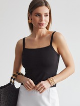 Костюм для дома и сна, состоящий из топа на бретелях и шорт. Топ на регулирующихся бретелях, на груди застегивается на три пуговицы, верх декорирован отворотами, по низу узор на ткани. Шорты на широкой резинке со шнурком и манжетами. Подходит также для уличной носки