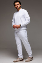 Костюм мужской брюки+футболка. Брюки выполнены из футера, притачной пояс на резинке, карманы с двойной мешковиной, низ подшит. Футболка выполнена из вискозного полотна, оформлена декоративной печатью, горловина обработана обтачкой.