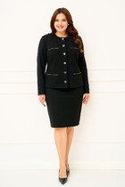 Комплект состоит из туники и брюк. Туника прямого силуэта, с округлой горловиной, с удлиненной спинкой. Рукав короткий, со вставкой из отделочного полотна. Брюки свободные, длинные, с карманами, на поясе. Горловина и вход в карманы брюк обработаны бейкой из отделочного полотна.