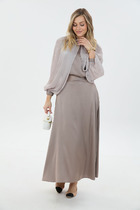 Юбка миди с глубокими встречными складками и разрезом по переду добавляет образу женственности. В боковых швах карманы. Юбка на подкладке.  Для максимально комфортной посадки по бокам пояса вставлена эластичная резинка. Сочетание мягкого верха и строгого низа создаёт баланс между комфортом и аккуратностью, делая комплект универсальным для офиса, повседневных выходов и стильных деловых встреч.