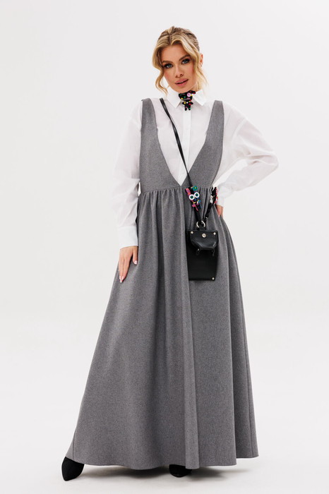 Сарафан А-силуэта, с фигурными бретелями. Застежка на боковую молнию.