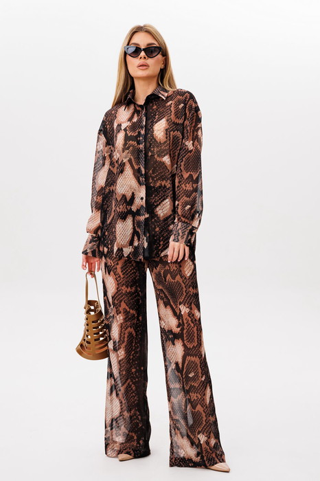 Блузка свободного силуэта, с центрально-бортовой застежкой по переду на петли пуговицы. Воротник отложной стойка. Спинка на кокетке. Рукав длинный на манжете.
