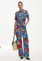 Брюки прямого силуэта на притачном поясе. По переду застежка на тесьму-молнию. По боковым действующие карманы.