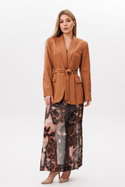 Брюки-кюлоты, свободный силуэт и умеренный объем обеспечивают максимальный комфорт. В боковых швах обработан карман с отрезным бочком, застёжка центральная на молнию и петлю и пуговицу. Верхний срез брюк обработан притачным поясом с шлёвками для ремня, для идеальной посадки по спинке вставлена эластичная тесьма.