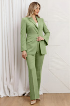 Женский брючный костюм — это идеальное сочетание стиля, комфорта и универсальности, которое станет вашим верным спутником как на деловых встречах, так и на торжественных мероприятиях. Изготовленный из высококачественной поливискозной ткани, этот костюм обеспечивает легкость и приятные ощущения при носке, а его элегантный пиджак и классические брюки подчеркивают вашу женственность и утонченность. Костюм женский 2-х предметный: жакет и брюки. Жакет полуприлегающего силуэта: бочок с выточкой по полочеке, по спинке средний шов. Застежка двухбортная, карман клапан "обманка". Рукав двухшовный. Брюки прямые. По полочке карман и складки. Пояс на резинке. Строгий и модный фасон делает его актуальным в любой ситуации, будь то офис, свадьба или прадничный выход. Длина жакета: 73см . Длина рукава: 62см. Длина брюк: 100 см.