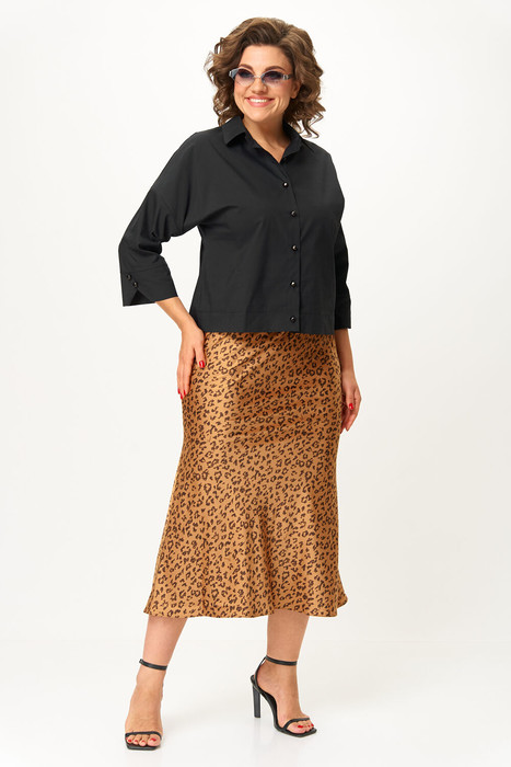 Комплект женский 2-х предметный (блузка, юбка). Отлично подойдет на любой тип фигуры, подчеркнет вашу женственность. Блузка прямого силуэта со спущенным плечом. Застежка- планка на петли и пуговицы. Воротник на отрезной стойке. Рукав одношовный, втачной, 3/4 длины с манжетой. В качестве декора- по манжете пуговицы, по низу блузки широкая подгибка с отстрочкой. Юбка трапециевидного силуета. Пояс на резинке. Длина блузки (50-54)-53см, (56-60)- 55см . Длина рукава (50-60)-32см. Длина юбки (50-60)-91см.