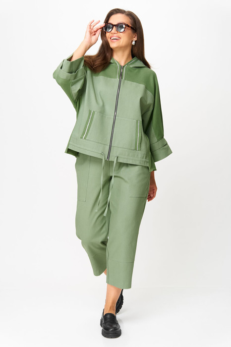 Оригинальный комплект женский 2-х пердментый (кофта -зипка и брюки) из двух видов ткани: верх- трикотажное полотно и джинс, брюки-джинсовое полотно от бренда Anastasia, идеальный для любого случая. Этот костюм сочетает в себе элегантность и комфорт, что делает его подходящим как для повседновной носки, так и для праздничных мероприятий. Нежный и теплый материал делает его отличным выбором для осенне-зимнего периода, при этом он легкий, поэтому его можно носить и в прохладную погоду летом . Кофта оверсайз на молнии с капюшоном прямого силуэта. Рукав 3/4 длиный с двойной манжетой. По полочке идут накладные карманы, по низу -кулиска. В качестве декора по капюшону и накладным карманам - отделочная тесьма. Брюки -бананы 7/8 , пояс на резинке. По передней и задней половинкам идет отрезная кокетка и по низу брюк- подрезы. Карманы накладные спереди.Плотная, натуральная джинсовая ткань визуально скрывает любые недостатки. Отдельный части костюма легко будут сочетаться с вещами из Вашего гардероба. Модель можно отнести к стилю спортивный кэжуал, оверсайз, спортивный шик. Костюм можно носить с босоножками, кроссовками, высокими сапогами или ботинками Хороших покупок от «Анастасия». Длина кофты (по спинке):(50-54)- 62см, (56-60)-66 см. Длина рукава с манжетой: (50-54)-55см, (56-60)-57 см. Длина брюк: (50-54)-87 см, (56-60)-89 см
