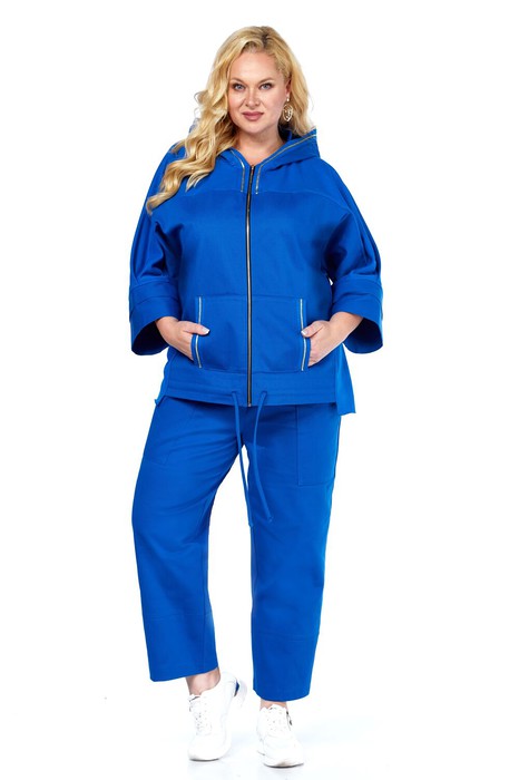 Оригинальный комплект женский 2-х пердментый (кофта -зипка и брюки) из двух видов ткани: верх- трикотажное полотно и джинс, брюки-джинсовое полотно от бренда Anastasia, идеальный для любого случая. Этот костюм сочетает в себе элегантность и комфорт, что делает его подходящим как для повседновной носки, так и для праздничных мероприятий. Нежный и теплый материал делает его отличным выбором для осенне-зимнего периода, при этом он легкий, поэтому его можно носить и в прохладную погоду летом . Кофта оверсайз на молнии с капюшоном прямого силуэта. Рукав 3/4 длиный с двойной манжетой. По полочке идут накладные карманы, по низу -кулиска. В качестве декора по капюшону и накладным карманам - отделочная тесьма. Брюки -бананы 7/8 , пояс на резинке. По передней и задней половинкам идет отрезная кокетка и по низу брюк- подрезы. Карманы накладные спереди.Плотная, натуральная джинсовая ткань визуально скрывает любые недостатки. Отдельный части костюма легко будут сочетаться с вещами из Вашего гардероба. Модель можно отнести к стилю спортивный кэжуал, оверсайз, спортивный шик. Костюм можно носить с босоножками, кроссовками, высокими сапогами или ботинками Хороших покупок от «Анастасия». Длина кофты (по спинке):(50-54)- 62см, (56-60)-66 см. Длина рукава с манжетой: (50-54)-55см, (56-60)-57 см. Длина брюк: (50-54)-87 см, (56-60)-89 см