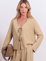 Укороченная свободная блузка с завязками и с V-вырезом изо льна с вискозой