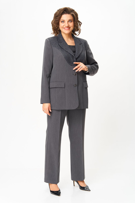 Костюм полуприлегающего силуэта, состоящий из жакета и брюк, выполнен из однотонной костюмной ткани. Ткань верха имеет механическое растяжение благодаря содержанию в ней эластана. Брючный костюм идеальный вариант как на торжественные мероприятия, так и отличный офисный вариант.