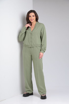 Костюм женский трех предметный, состоящий из жакета, жилета и юбки. Жакет полуприлегающего силуэта с центральной застежкой на петли и пуговицы, с пиджачным воротником, с втачными рукавами. Перед с нагрудными вытачками, отрезными бочками, прорезными карманами «в рамку» с клапаном и прорезным с листочкой. Спинка с отрезными бочками и средним швом. Рукава двухшовные со шлицей.