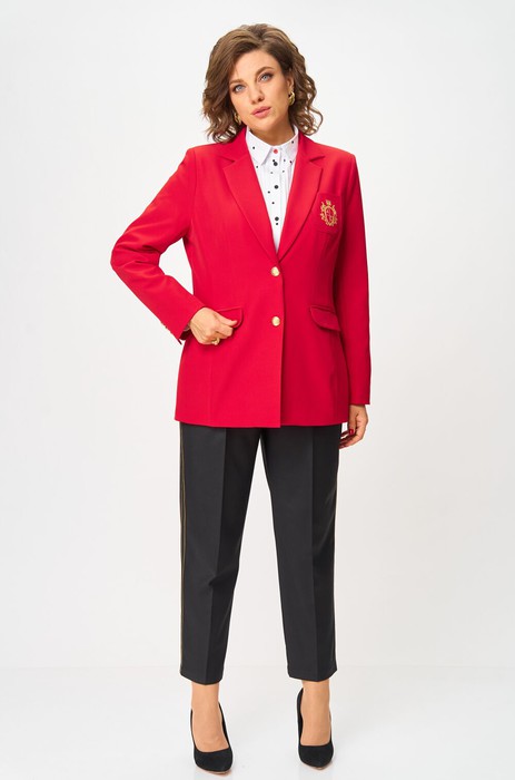 Прекрасный, стильный, яркий женский жакет не оставит равнодушной ни одну модницу! Полуприлегающий классический покрой подчеркнет достоинства фигуры. Жакет с застёжкой спереди на петли и пуговицы, с пиджачным воротником и втачными двухшовными рукавами. По переду выполнены боковые прорезные карманы с клапанами и нагрудный накладной карман с дизайнерской фирменной вышивкой, спинка со швами.
