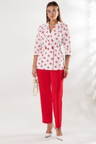 Блузка прямого кроя со съёмным поясом, это стильно и удобно. Яркая и женственная, она станет акцентом вашего гардероба. Свободный крой и рукава длины 3/4 создают утонченный силуэт, который подчеркнет вашу фигуру. Дизайн блузки сочетает в себе классическую элегантность и модные тренды. Нежная дизайнерская вышивка добавляет образу легкости и изящества.