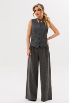 Представляем костюм лаконичного архитектурного кроя, состоящий из жакета на принтованной подкладке и брюк-палаццо.
